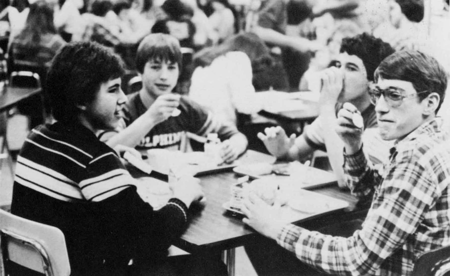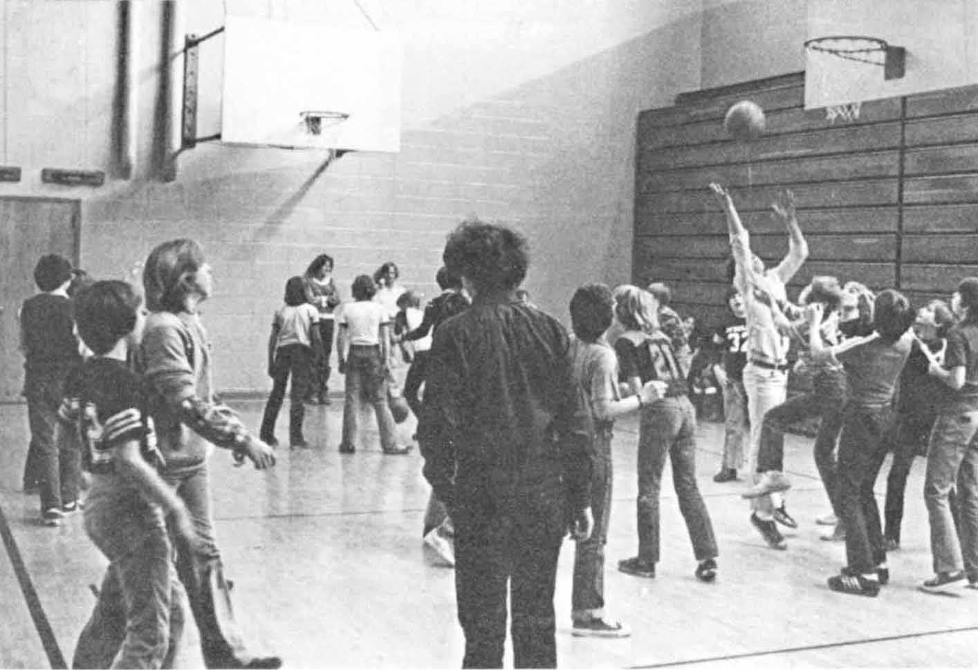 The 7th-12th grade lunchtime basketball games in the gym (8th grade shown above) were brutal. We often went without eating lunch. - DLVE