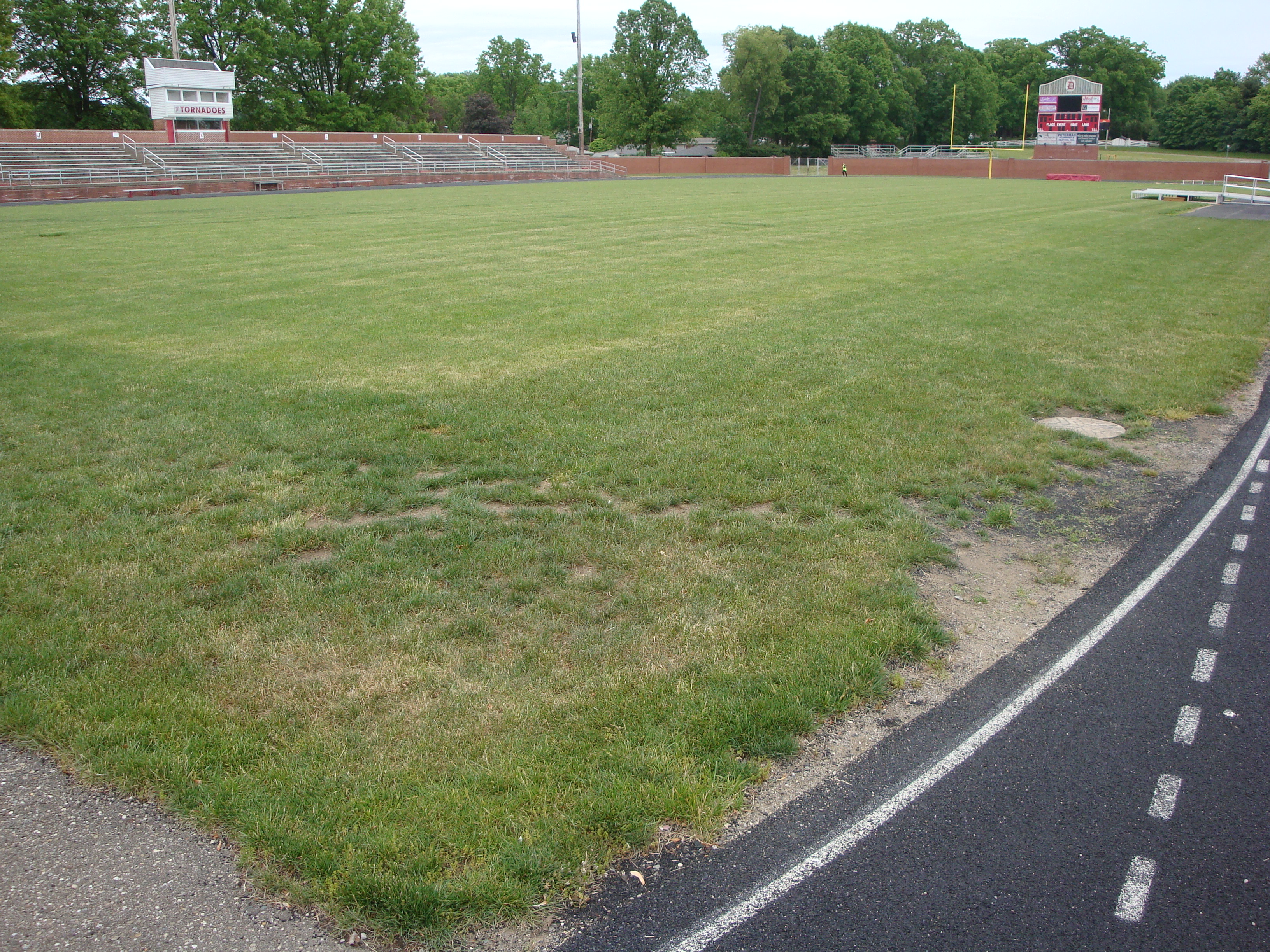 Last day of the real grass field in Crater Stadium 5-27-2013 (with Doug Willoughby doing laps on the track)