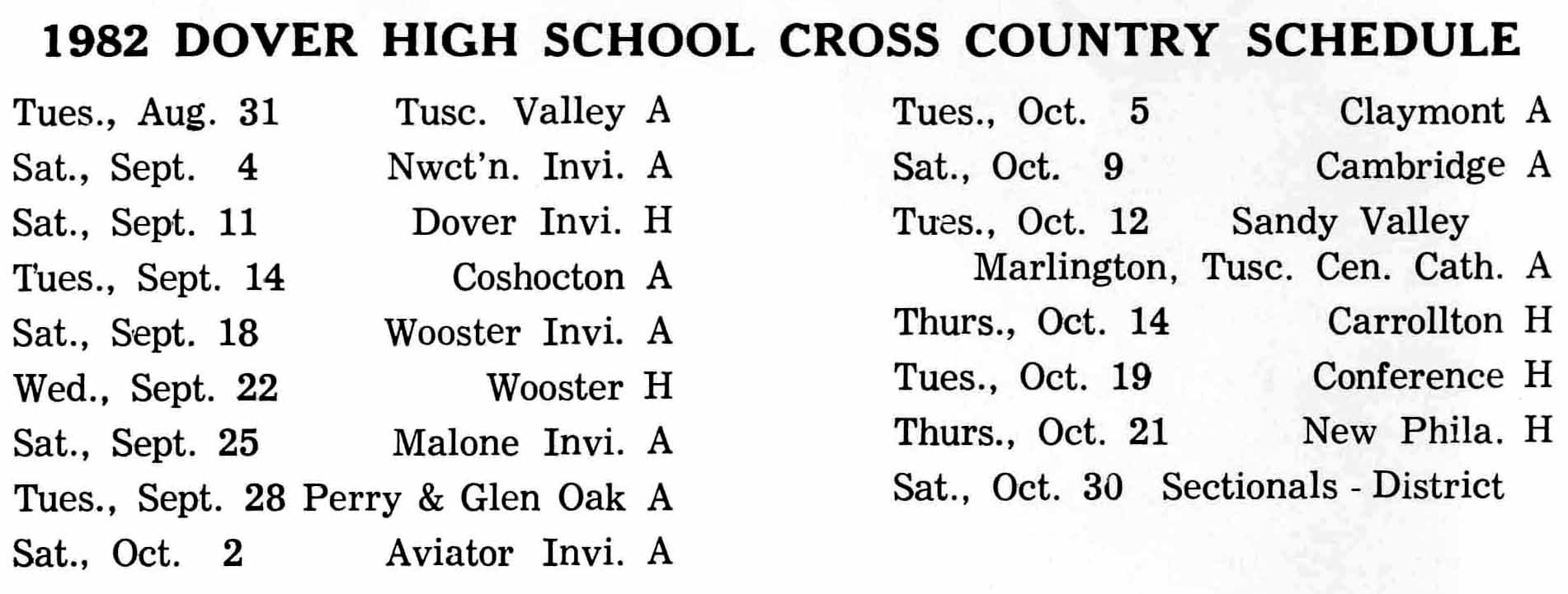 Varsity Cross Country Schedule 1982