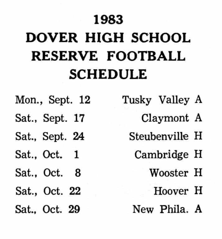 Reserve Football Schedule 1983