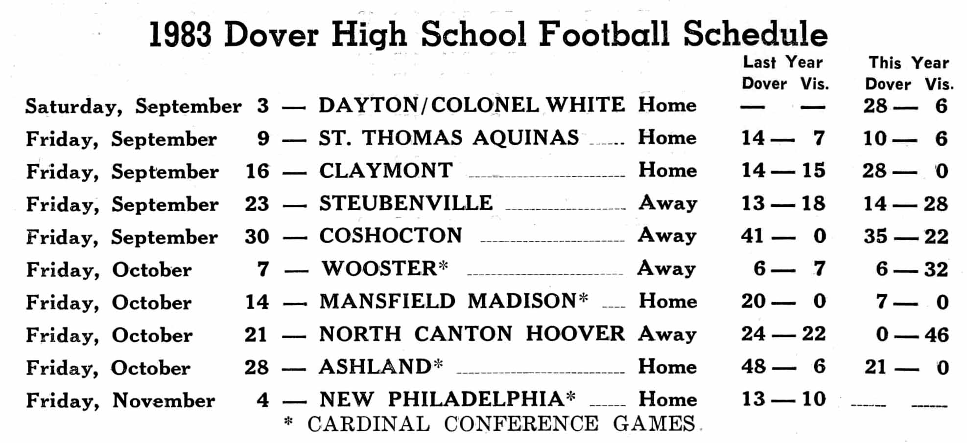 Varsity Football Schedule 1983