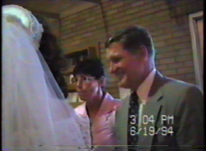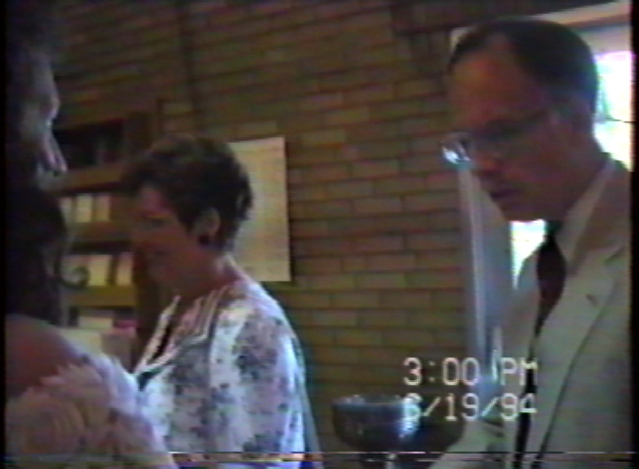 Former coach Tom & Sue Redman; team physician Don & Barbara Braden congratulating Cheryl Van Epps-Fung after her wedding in St. Joseph's Church 6-19-1994. .mov format, 43 sec., 43.4MB; 30 sec., 30.3MB