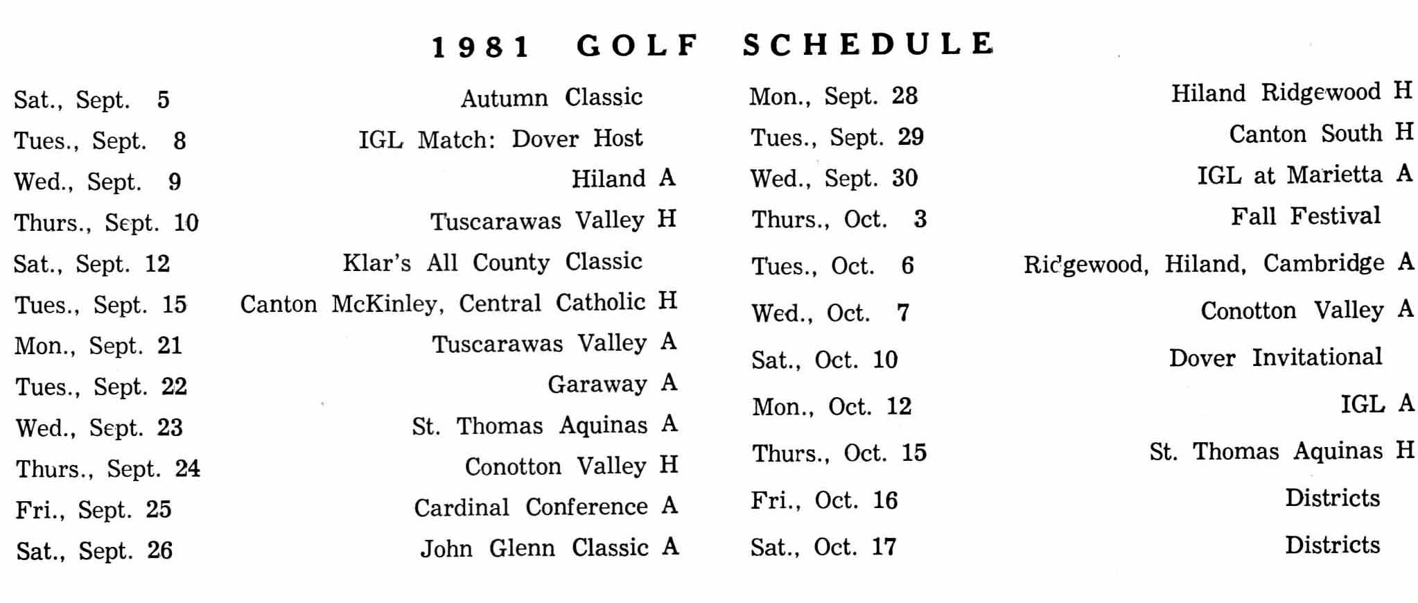 Varsity Golf Schedule 1981