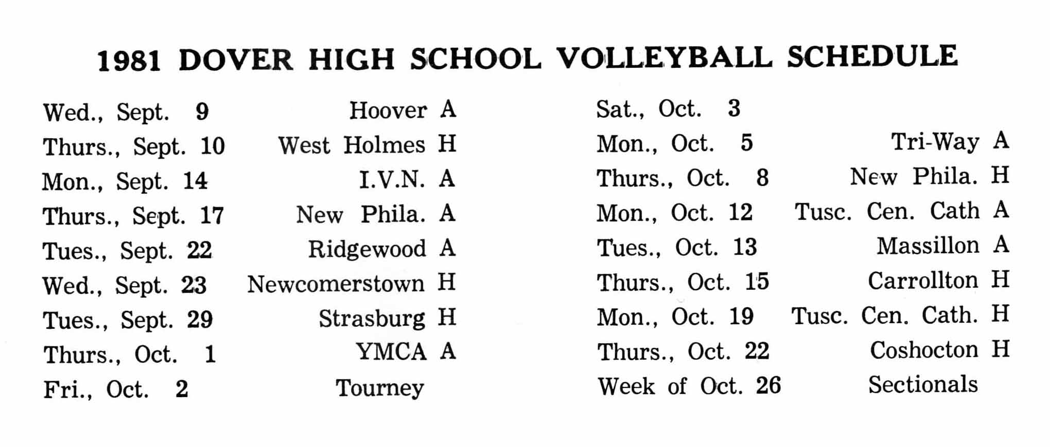 Varsity Volleyball Team Schedule 1981