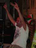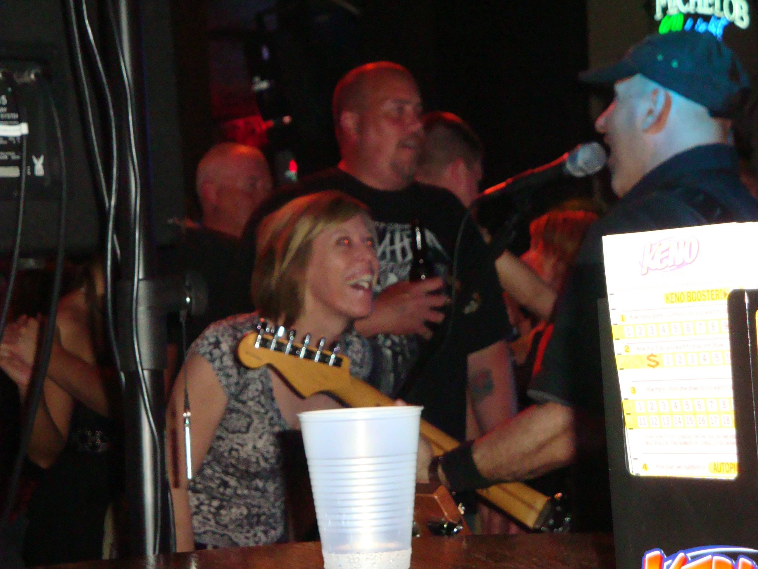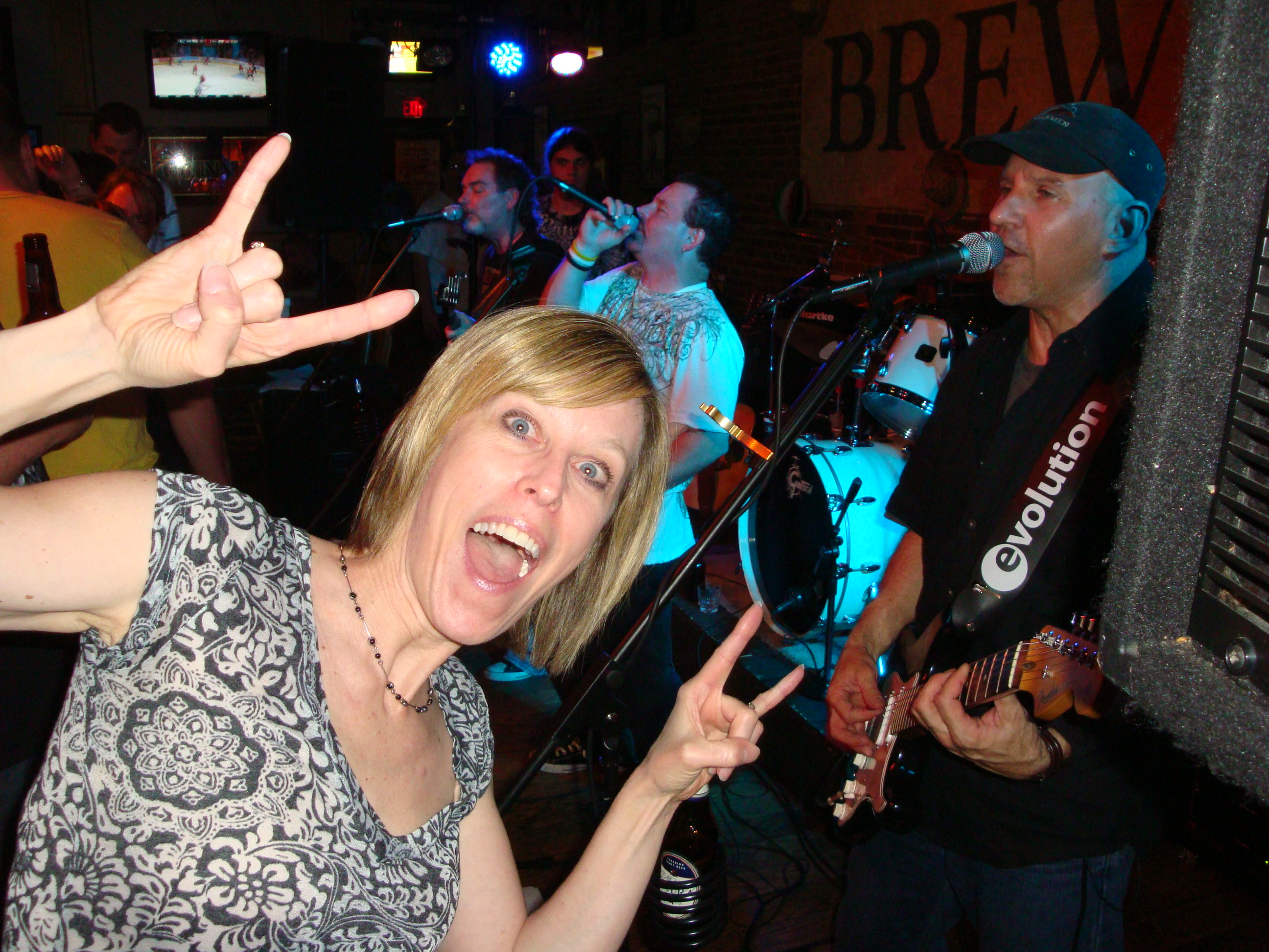 Christine Austin Metzger, wife of bassist and vocalist Steve, rocking out