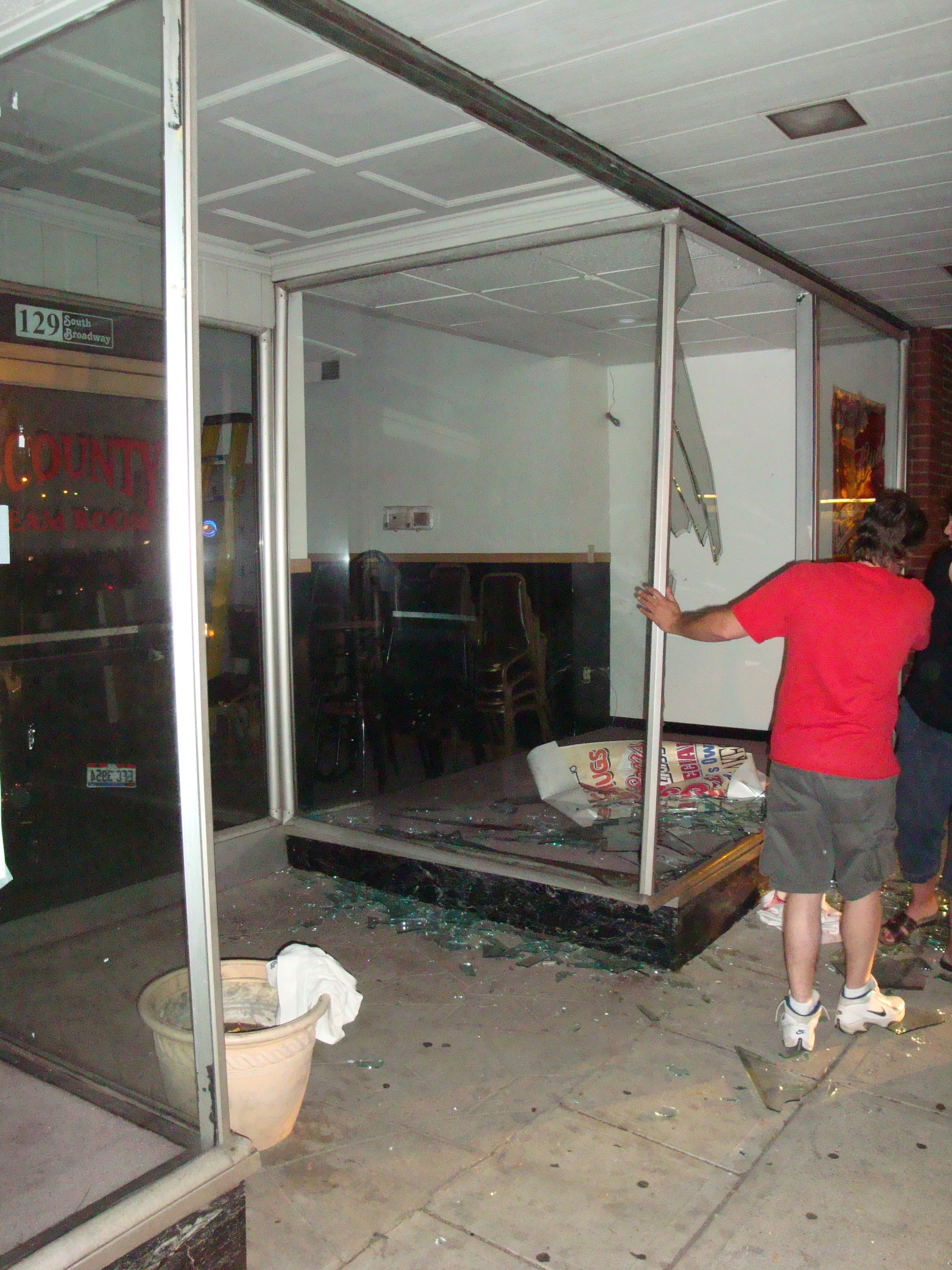 Aftermath next to the Brewhouse; meat wagon down the alley by Williams Furniture's warehouse