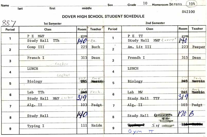Sample Class Schedules