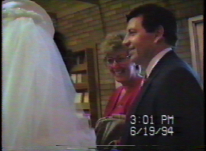 Tom Jr. and Karen Armstrong, parents of Polly, congratulating Cheryl Van Epps-Fung after her wedding in St. Joseph's Church 6-19-1994. .mov format, 30 sec., 293MB
